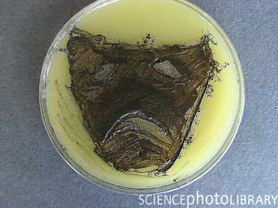 Jamur dibiakkan sedemikian rupa sehinggg membentuk gambar ‘tongkat Asclepius’ (logo kedokteran). Ini merupakan sebuah simbol dari mitologi Yunani kuno, yang diasosiasikan dengan pengobatan dan penyembuhan.